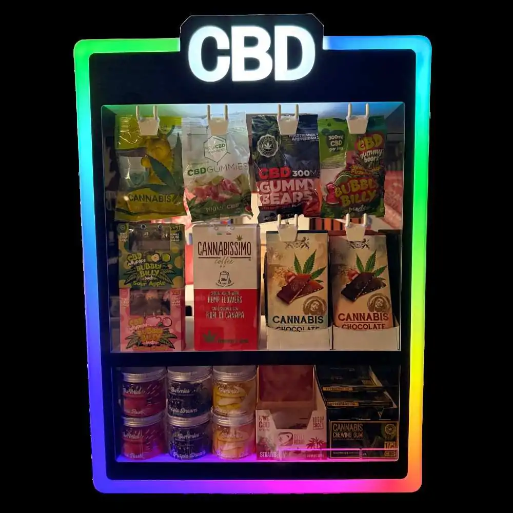 - Assortiment complet : bonbons, sucettes, chocolats, cafés et gummies CBD