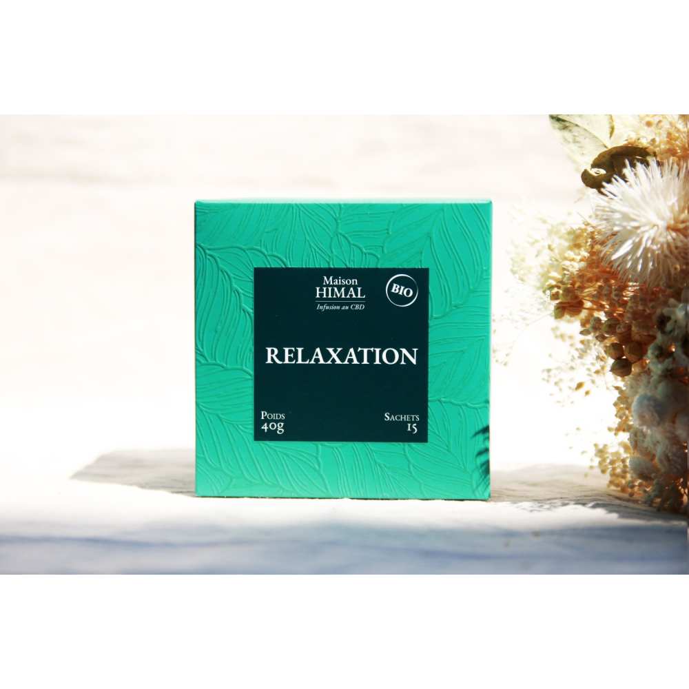 La Tisane CBD bio relaxation est conditionnée dans une boîte de 40 grammes contenant 15 sachets. Chaque sachet est dosé à 19mg de CBD, pour une pause détente optimale.