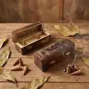 Boîte Encens Cônes Bois Manguier 15cm | Porte-Encens Artisanal Indien