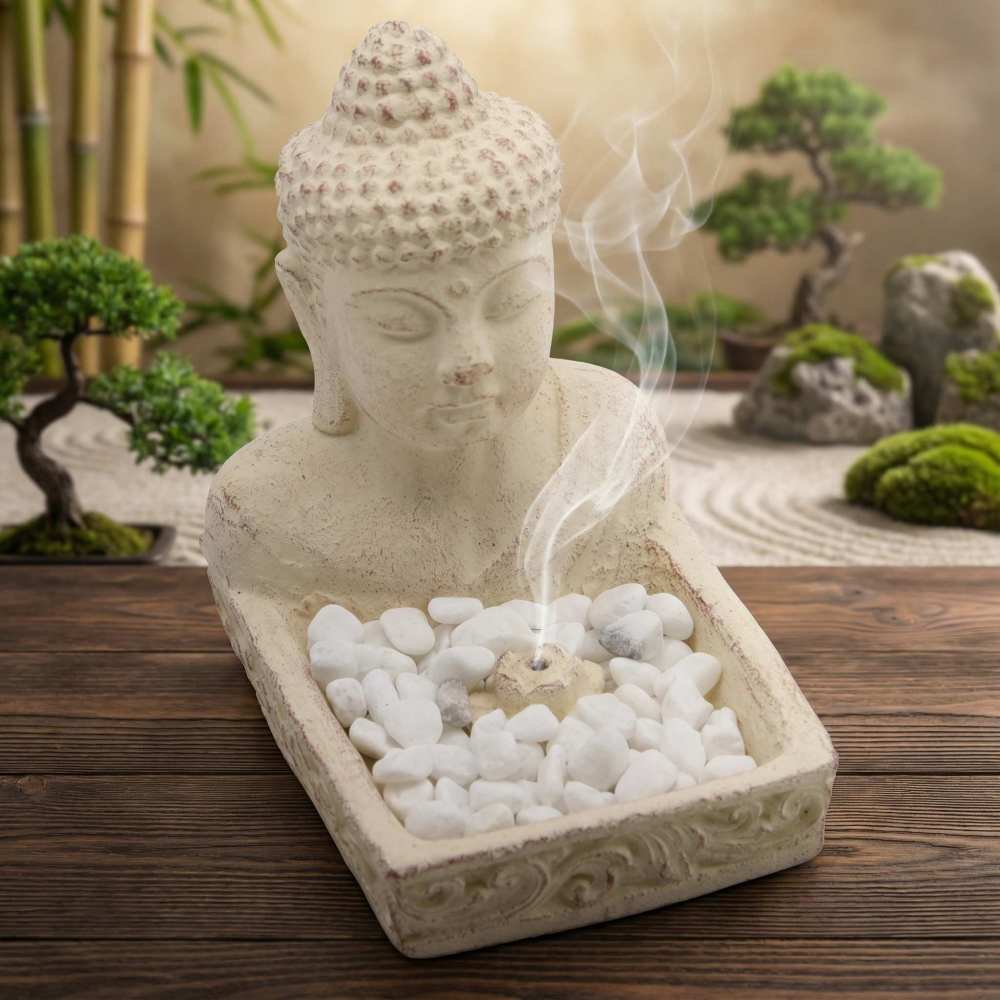 Brûleur dEncens Buddha Feng Shui - Élégance Spirituelle en Béton Crème