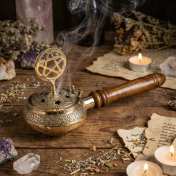 Encensoir Pentagramme Laiton et Bois | Brûleur Encens Traditionnel
