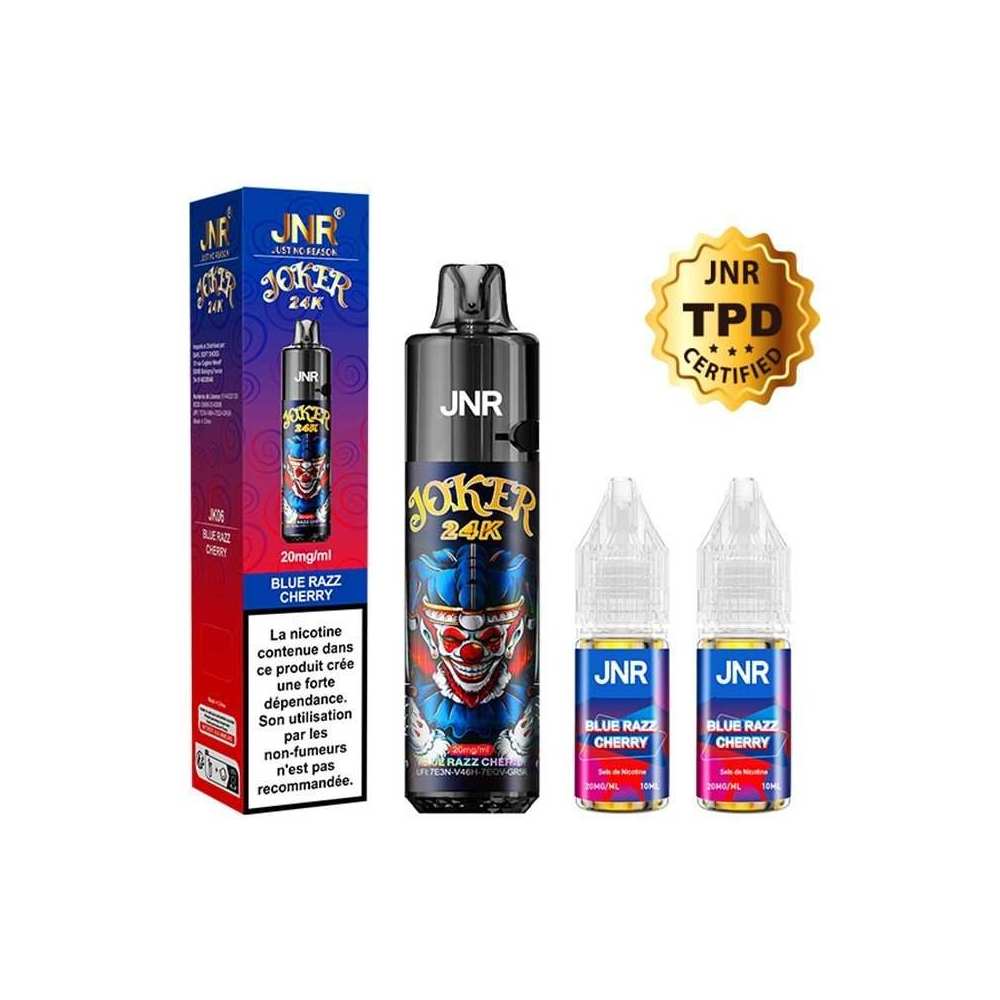 Découvrez le Puff Joker 24K Blue Razz Cherry JNR, une cigarette électronique rechargeable qui transforme votre expérience de vape. Avec sa batterie puissante de 800mAh et sa capacité exceptionnelle de 24000 bouffées, ce dispositif innovant combine performance durable et saveurs intenses de framboise bleue et cerise pour une satisfaction maximale. Kit complet avec recharges incluses et technologie mesh avancée pour une vape optimale.