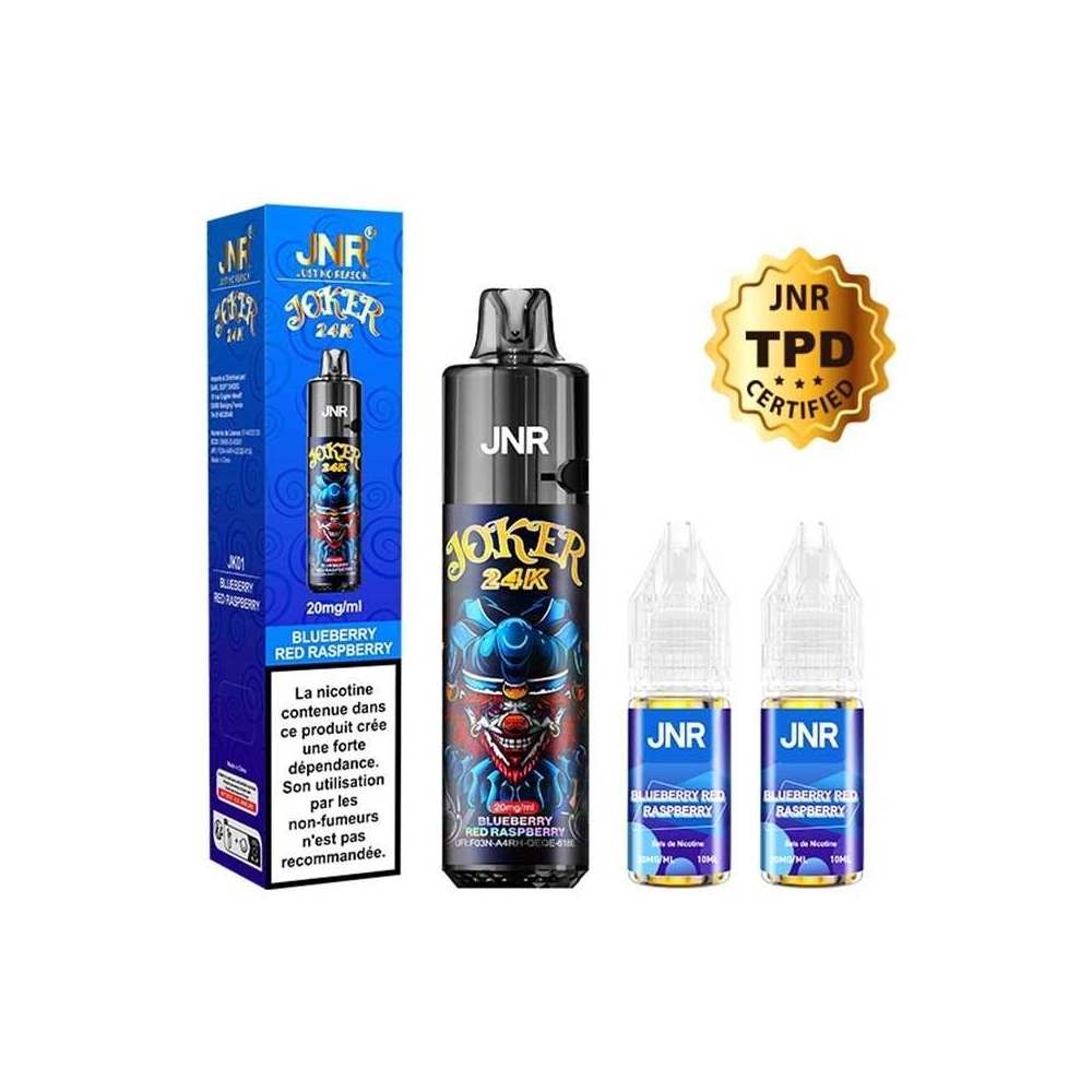 Découvrez le Kit Puff Joker 24K JNR Blueberry Red Raspberry, une révolution dans l'univers de la vape rechargeable. Cette cigarette électronique premium combine une batterie performante de 800mAh avec un réservoir de 2ml, offrant jusqu'à 24000 bouffées d'une délicieuse alliance entre myrtille fraîche et framboise rouge. Kit complet avec deux e-liquides supplémentaires inclus pour une expérience vapoteuse exceptionnelle et durable.