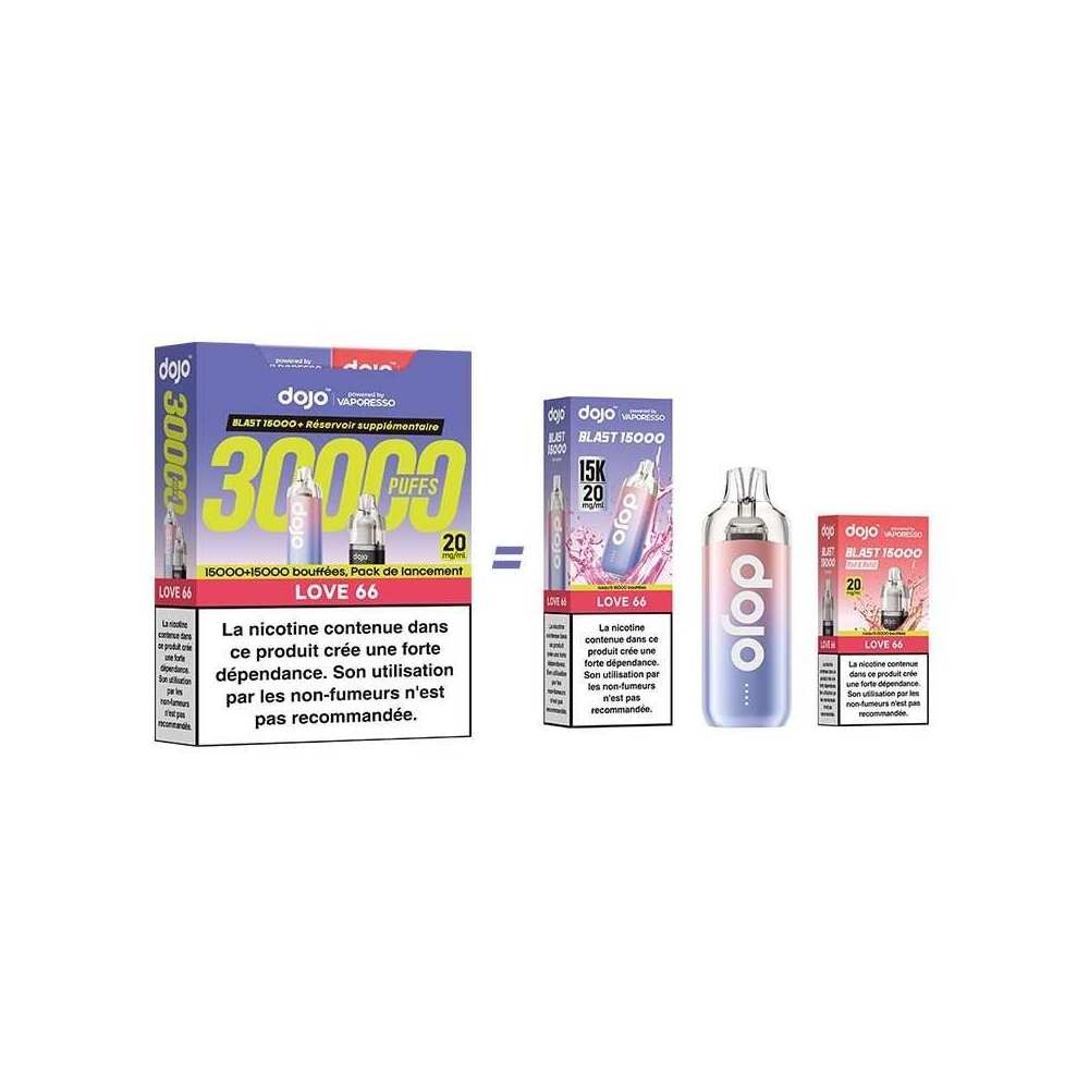- Bundle économique complet : 1 kit Dojo Blast 15K 1 pod supplémentaire Love66